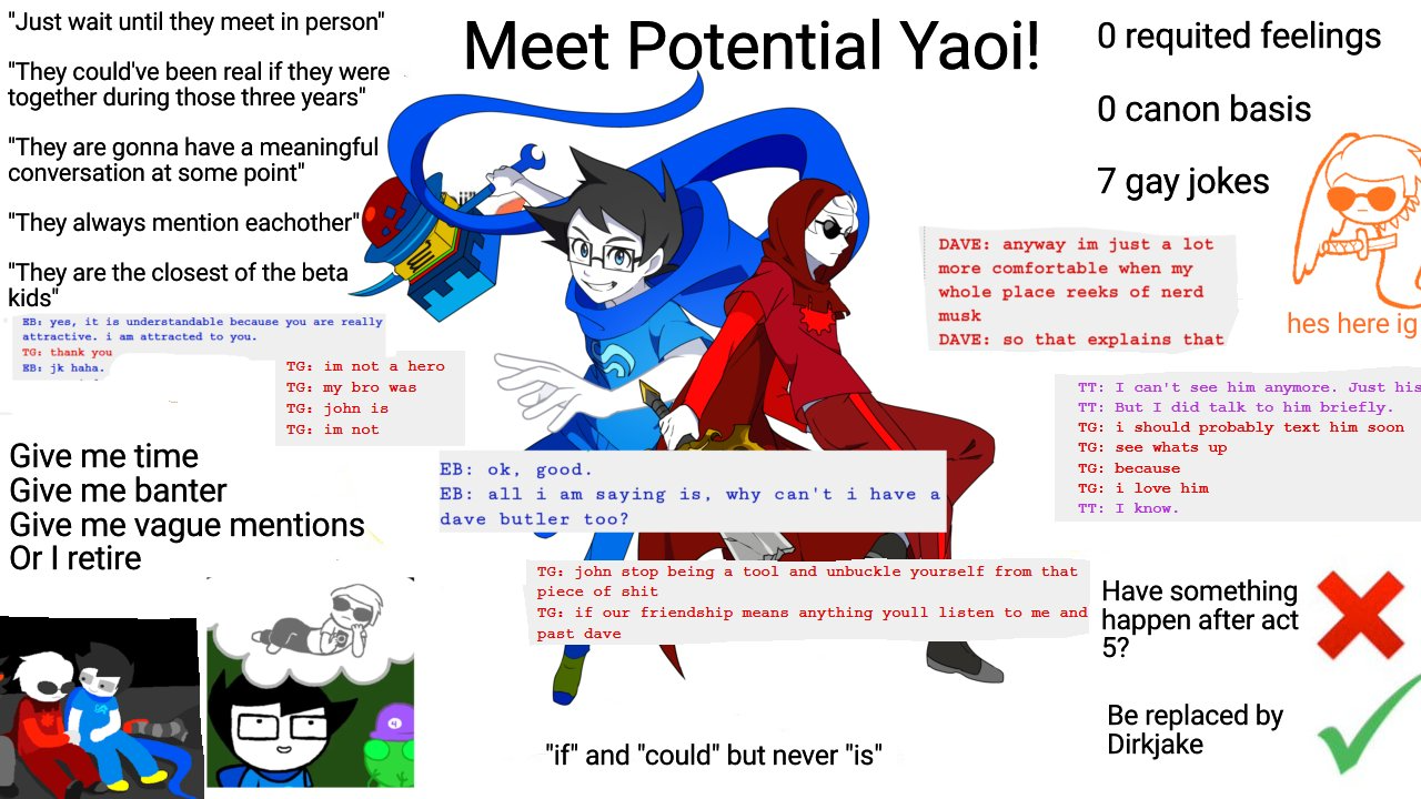 davekat so cute but im ngl everytime they interact i remember that one johndave potential yaoi img where its like 'they couldve been so canon if john was on the meteor!!!' like damn... yea...