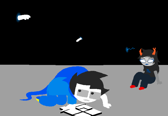 [S] Jane: Enter. is CRAZY. like wdym? so jane was technically communnicating w them from the past???? bc dirk goes upstairs.. meets the drones... idek... maybe its just parallels. like coincidentally when jane entered the game dirk was going up onto the roof, and now he's just gone onto the roof again. idk man. !!!!! however i think next is act 6 intermission 2!!!1 which i am excited for... john n jade on big boat.