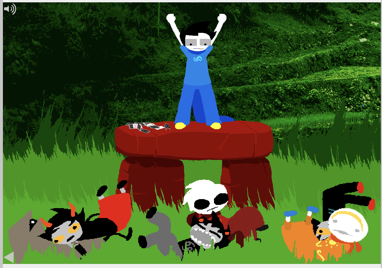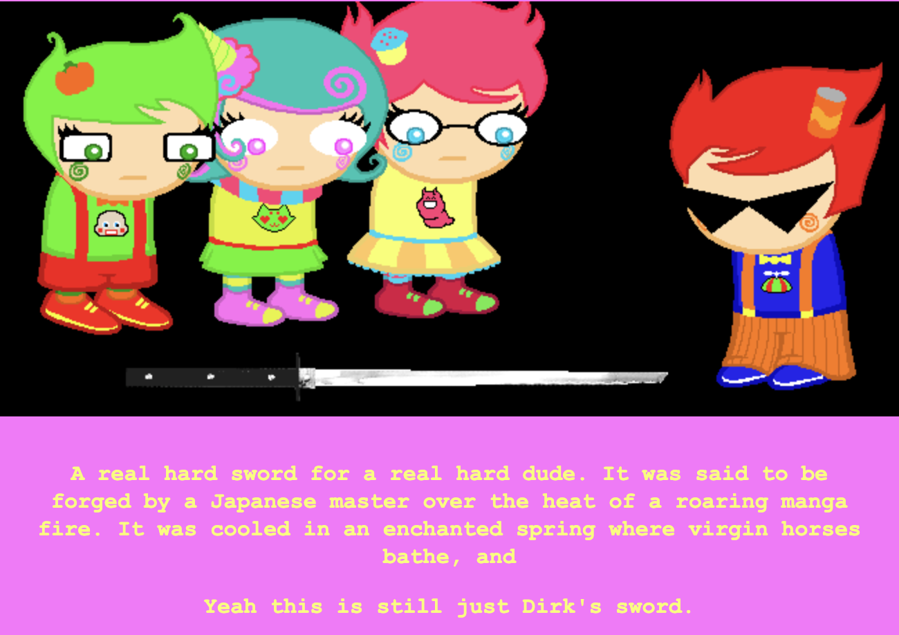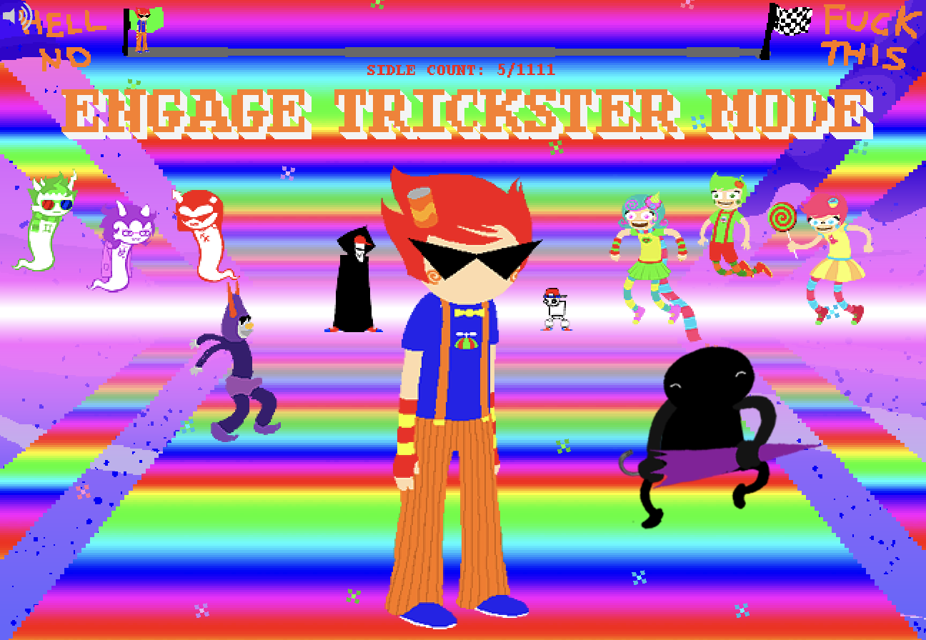 trickster mode is really funny to me bc theyre all annoying and colorful. i also like it bc for like 300 pages we go back to the start of homestuck with stupid flash games that r literally just mashing buttons or clicking and dragging... simple joys. Dirk is so funnny here.